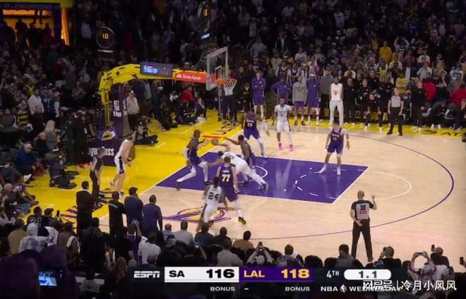比賽還剩下1.1秒時(shí),馬刺發(fā)界外球,雙方搶球后球出界,裁判將球權(quán)判給了馬刺。裁判報(bào)告指出,馬刺前鋒凱爾登約翰遜是最后觸球的球員,球權(quán)應(yīng)該歸屬于湖人。值得一提的是,之后比賽還剩下0.4秒時(shí)馬刺球員尚帕尼制造了空接犯規(guī),但他沒有把握住絕平機(jī)會(huì),兩次罰球都沒有命中。